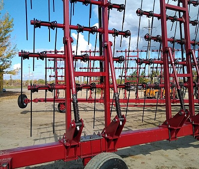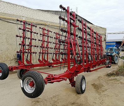 Борона пружинная предназначена для эффективной подготовки почвы. Основная сфера использования – уничтожение сорняков на посевных полях, а также – создание водного баланса в плодородном слое почв грунта и разрушение образовавшейся верхней корки. Трактор проходит с бороной данного вида, как до посевных работ, так и после сбора урожая. Поверхность поля выравнивается. Подходит для всех видов технических и зерновых культур. Борона на один проход выполняет сразу 4 операции, начиная от боронования и рыхления почвы и заканчивая заделкой удобрений.