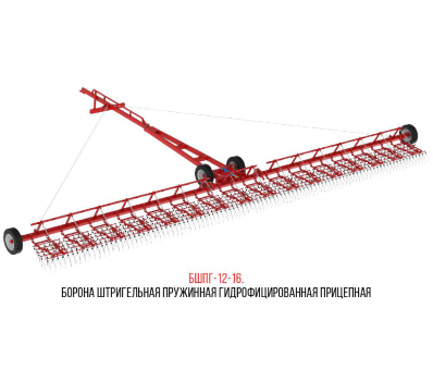 Борона Штригельная Прицепная Гидрофицированная БШПГ – предназначена для уничтожения сорной растительности, создания аэрационного режима в поверхностном слое почвы и разрушении почвенной корки. Борона может использоваться для довсходового и послевсходового боронования технических и зерновых культур, а также для выравнивания поверхности поля.