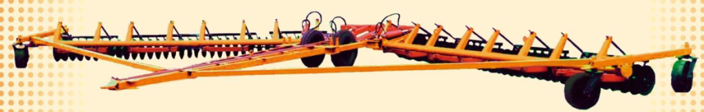 С передней частью рамы брусья соединены растяжками. Механизм гидроуправления установлен на раме и брусьях. К брусьям шарнирно присоединяются секции, к которым крепятся дисковые батареи.