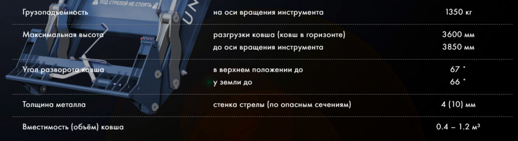Объем ковша, м3 — 0,4-1,2