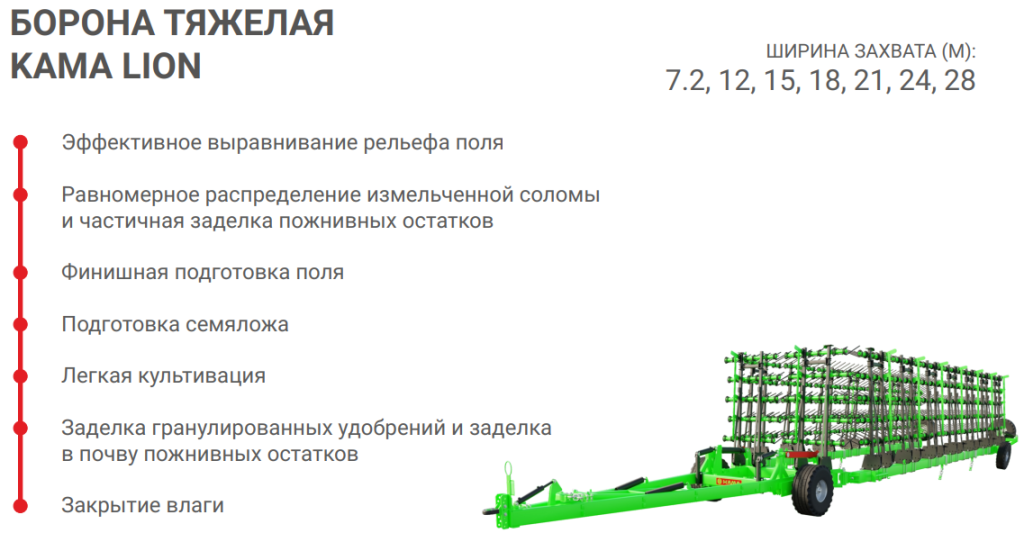 Применение тяжелой зубовой бороны КАМА LION позволяет достичь следующих результатов: