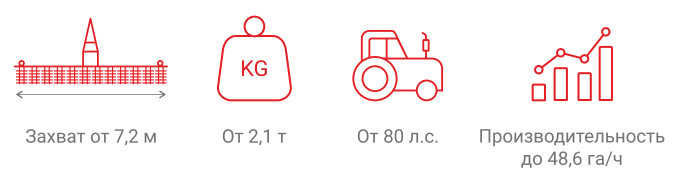 Тросовая система балансировки тягового усилия повышает управляемость широкозахватным агрегатом, а секционная конструкция обеспечивает хорошее копирование поверхности поля.