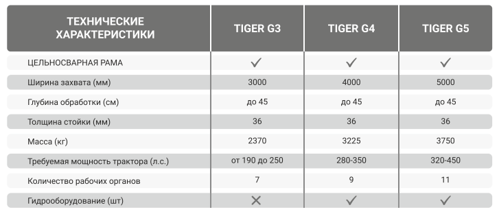 Глубина рыхления почвы составляет 45 см, что обеспечивает надёжное удержание влаги и вентиляцию плодородного слоя.