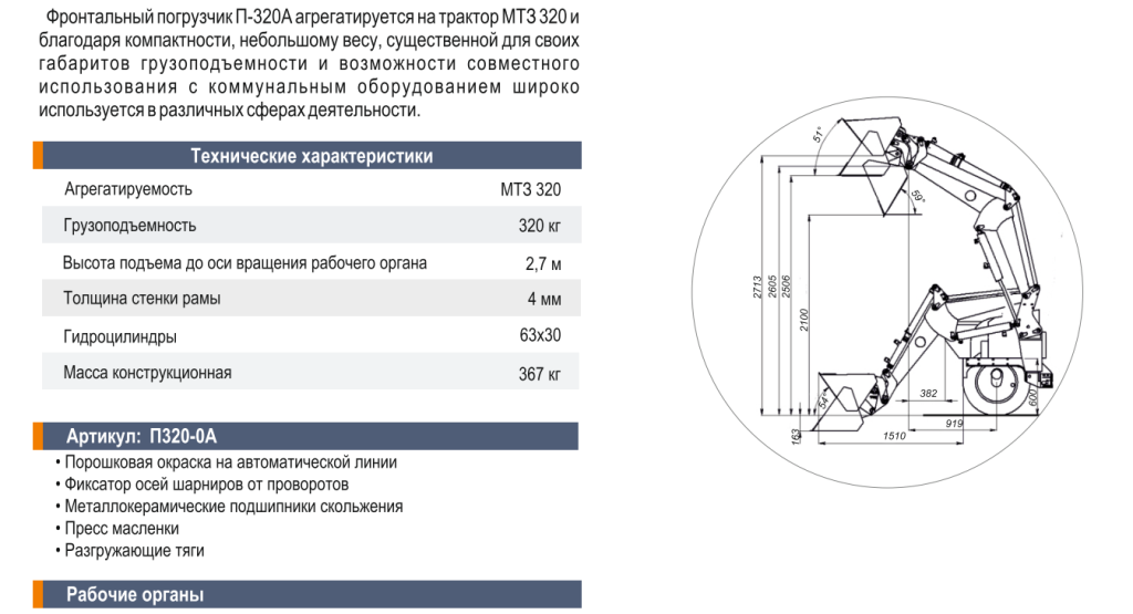 Грузоподъемность, кг — 320