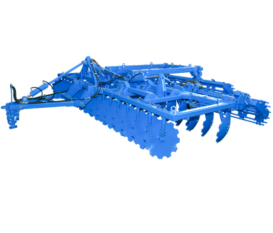 Дисковый агрегат комплектуется вырезными дисками 610 мм и производит дискование почвы на глубину до 18 см, что можно отнести к функциям дисковой бороны. Вместе с тем, планочно-трубчатый каток в жестком положении может использоваться в качестве задней опоры. За счет этого, а также регулировки сницы, возможно использовать довольно тяжелый агрегат в качестве лущильника, выставив глубину обработки в 6-7 см.