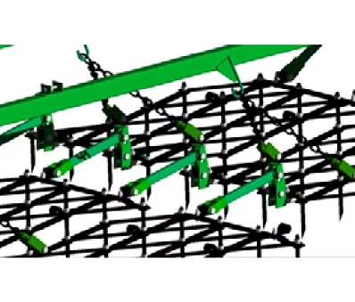 ▶ Оригинальная жесткая поводковая система закрепления зубовых борон исключает отклонение от прямолинейного движения бороны и заскакиванию борон друг на друга во время работы, обеспечивает прямолинейность хода борон и повышение качества выполнения технологического процесса.