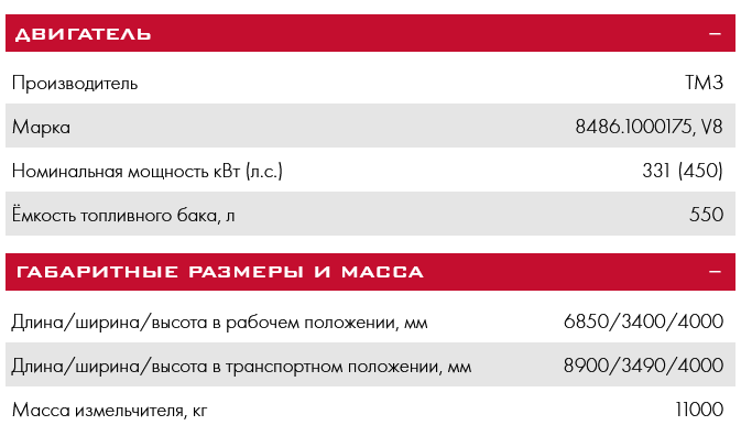 • Применённые конструкторские решения, надёжный и экономичный двигатель мощностью 450 л.с., комплектующие высокого технического уровня – всё рассчитано на стабильную работу комплекса в самых сложных условиях с высоким качеством измельчения. Производительность на заготовке кукурузного силоса 160 тонн в час, сенажа 85 тонн в час – эти показатели, подтвержденные в условиях реальной эксплуатации, а высокая загрузка машины в течение сезона гарантирует высокий уровень рентабельности кормозаготовки.