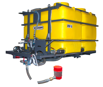 РАР-6 может комплектоваться центробежным насосом с рабочим давлением 10 бар, который позволяет заполнять резервуары самостоятельно через фильтр со шлангом. В таком случае емкость уже может использоваться для подвоза воды из любых водоемов в целях пожаротушения, полива растительных насаждений, раздачи воды на животноводческих комплексах.