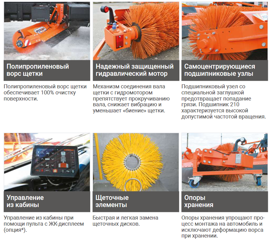 Средняя щетка «Road Master» — это навесное оборудование, которое применяется для очистки дорожного полотна с твердым покрытием.