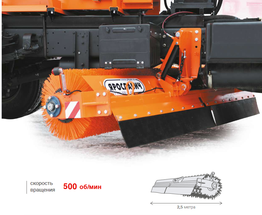 Устанавливается в межбазовое пространство коммунальных дорожных машин «Ярославич» и обеспечивает эффективную очистку дорог от мусора и пыли в летнее время, а в зимнее — от свежевыпавшего снега. Также может проводить качественную доочистку дорог после прохождения фронтального снегоуборочного отвала. Средняя щетка работает в плавающем режиме, оказывая оптимальное давление на поверхность дороги. Это минимизирует скорость износа щеточных элементов и обеспечивает высокую эффективность очистки полотна с преодолением препятствий. Эксплуатируется с автомобилями, оборудованными гидравлической системой. Управление осуществляется из кабины транспортного средства.