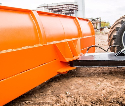 На отвал установлены 5 съёмных ножей. Каждый нож имеет 2 регулировки: группа отверстий, расположенная посередине, позволяет перевернуть нож при его износе.