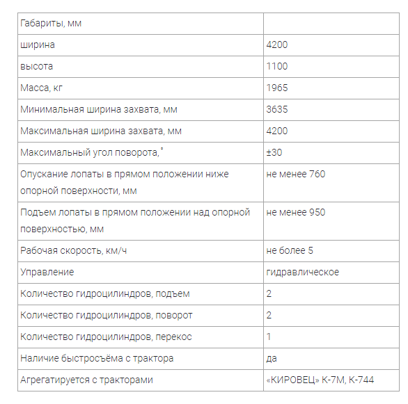 Срок службы оборудования увеличен, за счет установки двух гидроцилиндров на поворот отвала. Даже при ударных нагрузках на край лопаты нагрузка на гидросистему отвала и трактора распределяется равномерно, и гидросистема служит дольше.