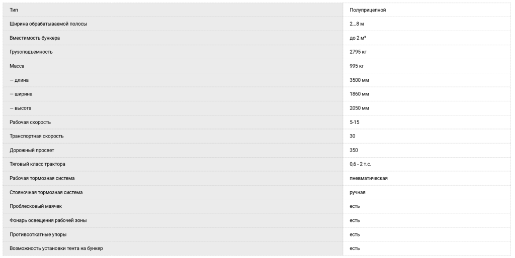 • вместимость — 2 куб.м. (может увеличиваться или уменьшаться при помощи добавления или удаления надставных бортов)