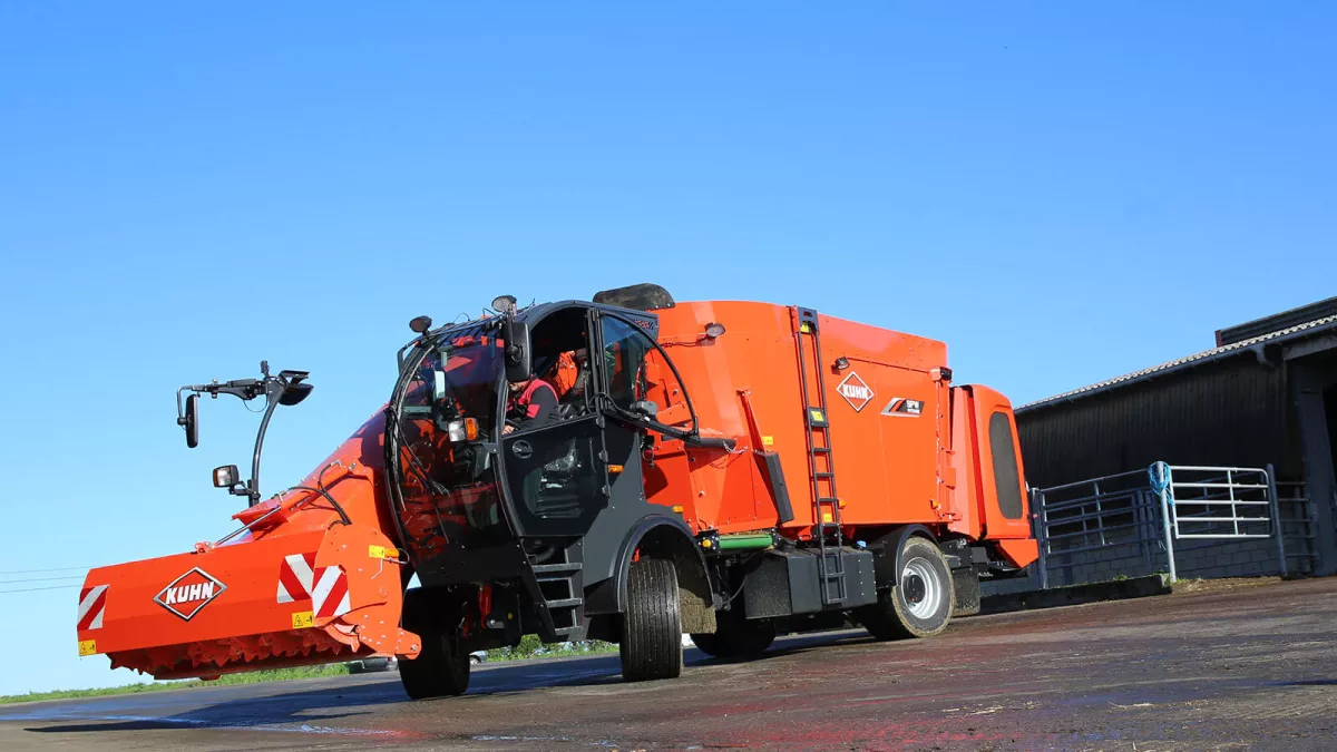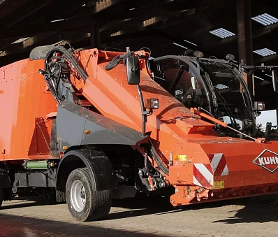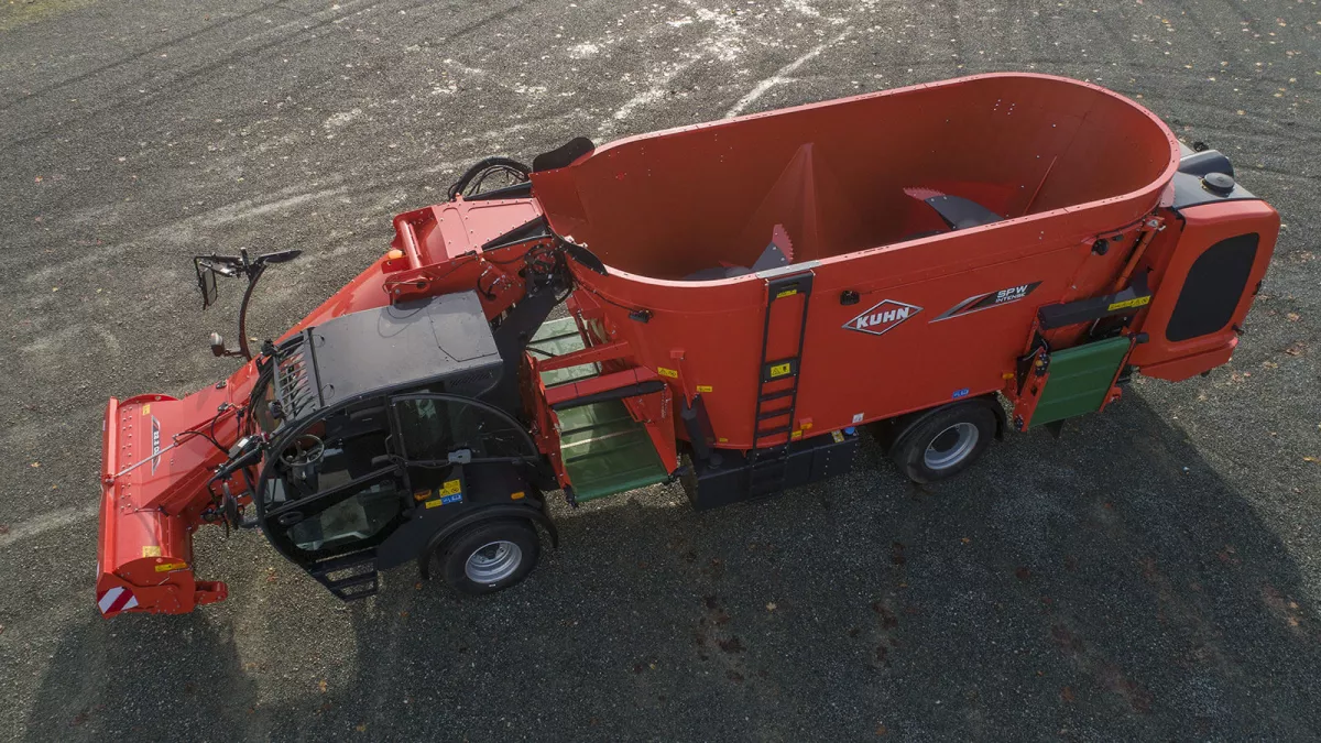 Кабина водителя на самоходном смесителе-раздатчике SPW Intense оборудована терминалом KUHN CCI. На его цветном сенсорном экране отображаются все технологические данные и информация о контроле веса. Водителю достаточно один раз взглянуть на экран, чтобы получить всю необходимую информацию о рабочем процессе. Максимальное удобство использования. С помощью терминала CCI оператор может управлять такими параметрами технического обслуживания машины, как настройка проведения плановых работ или работа в интерфейсе системы поиска неисправностей. Терминал CCI позволяет мгновенно регулировать скорость измельчающей головки, скорость вращения смесительного шнека и скорость подающего конвейера. С помощью терминала CCI можно управлять параметрами настройки кормов, составляя до 80 типов рациона из 15 различных компонентов. Терминал способен запомнить до 10 различных названий партий кормов. Возможность передачи данных через USB-порт на компьютер обеспечивает отслеживаемость выполнения всех проводимых операций.