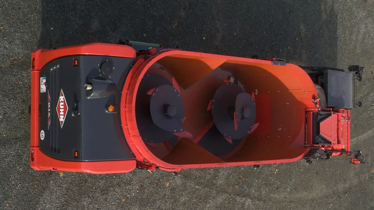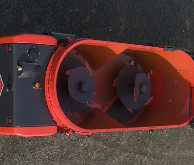 Модели SPW Intense доступны со смесительными бункерами объемом от 14 до 27 м3. Смешивание производится двумя вертикальными шнеками, особый дизайн которых сформировал репутацию смесителей-раздатчиков KUHN. На моделях SPW Intense объемом 14-18 3 скорость вращения шнеков регулируется от 0 до 50 об/мин для того, чтобы адаптировать резку к пропорции волокнистых кормов. Для моделей серии SPW Intense объемом 19, 22, 25 и 27 м3 система приводов гидравлического двигателя в сочетании с жестким универсальным соединением между двумя шнеками обеспечивает улучшенную резку волокна и оптимальную очистку в конце распределения. Можно регулировать скорость от 0 до 50 об/мин. Техническое обслуживание не требуется.