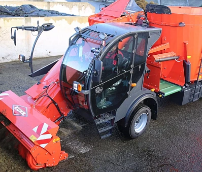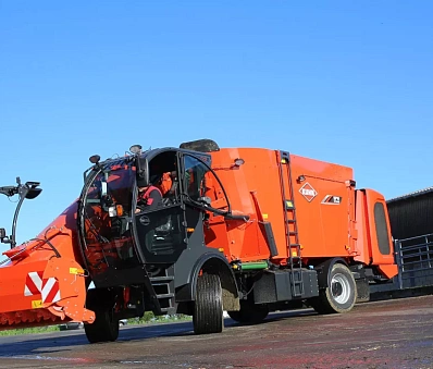 Площадь окон в новой кабине VISIOSPACE увеличена на 20% по сравнению с предыдущим вариантом исполнения. Новая конструкция VISIOSPACE обеспечивает лучшую видимость на всем рынке. Все препятствия для фронтального обзора были устранены для обеспечения максимальной точности во время ключевых операций по заходу в силос. Большое окно дверцы также обеспечивает безопасное вождение. Лобовое стекло покрыто самонагревающейся пленкой, что гарантирует быструю работу смесителя-раздатчика даже при утренних заморозках или при скоплении конденсата при передвижении со двора в сарай. Очистка лобового стекла производится с помощью двойных стеклоочистителей, монтируемых на установку высотой 1400 мм, с 3 распылительными форсунками.