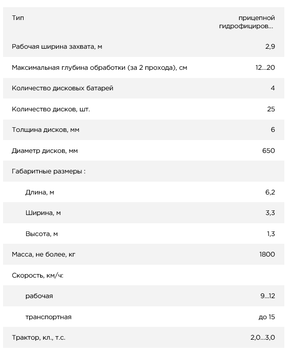 Дисковая борона БПТД-3-01 разработана по несимметричной двухследной схеме. В отличии двухследных полевых борон Х-образного типа, борона производит обработку почв без образования развальных борозд и свальных гребней, что позволяет применять борону непосредственно перед посевом без дополнительной обработки. Кроме того несимметричность батарей дает возможность смещать линию тяги бороны в сторону и удалить таким образом трактор от деревьев на необходимое расстояние, что позволяет обрабатывать междурядья в садах.