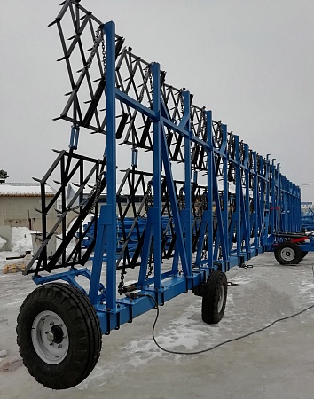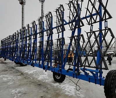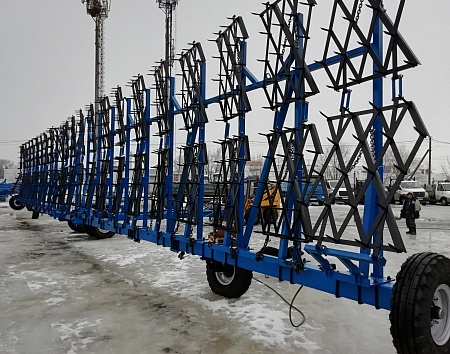Борона прицепная гидрофицированная БПГ используется для закрытия влаги в период ранневесеннего боронования с одновременным распределением пожнивных остатков, обработки паров, рыхления поверхностного слоя почвы (до 8 см). Борона БПГ обеспечивает выравнивание поверхностного слоя почвы, уничтожение проростков и всходов сорняков, разбивает комки. Орудие агрегатируется с тракторами мощностью от 150 л/с до 500 л/с . Большая ширина захвата позволяет обрабатывать поля с большей производительностью. А это экономия моторесурса и затрат на топливо.