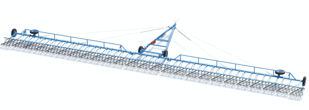 Жесткая, а не тросовая, конструкция растяжек позволяет двигаться задним ходом в рабочем положении и уменьшает радиус разворота на краю поля.