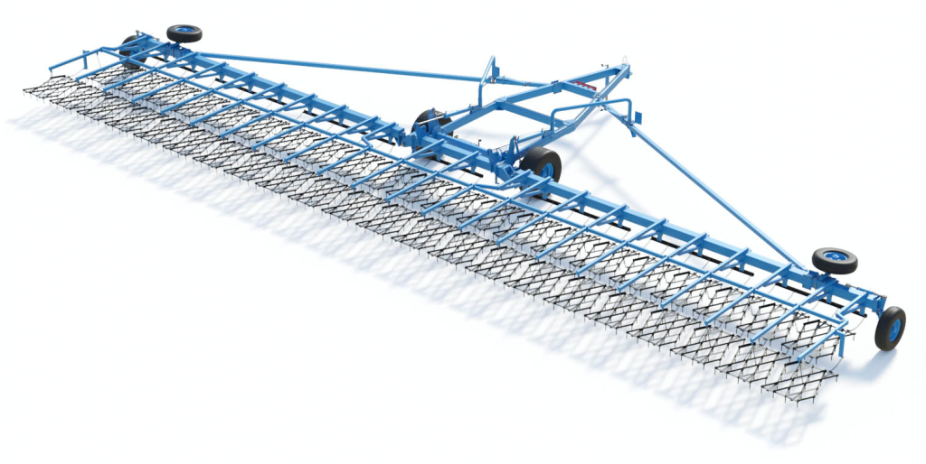 Ширина захвата сцепки — 26 м. Производительность 30 гектаров в час.
