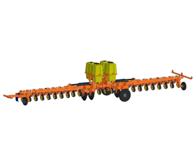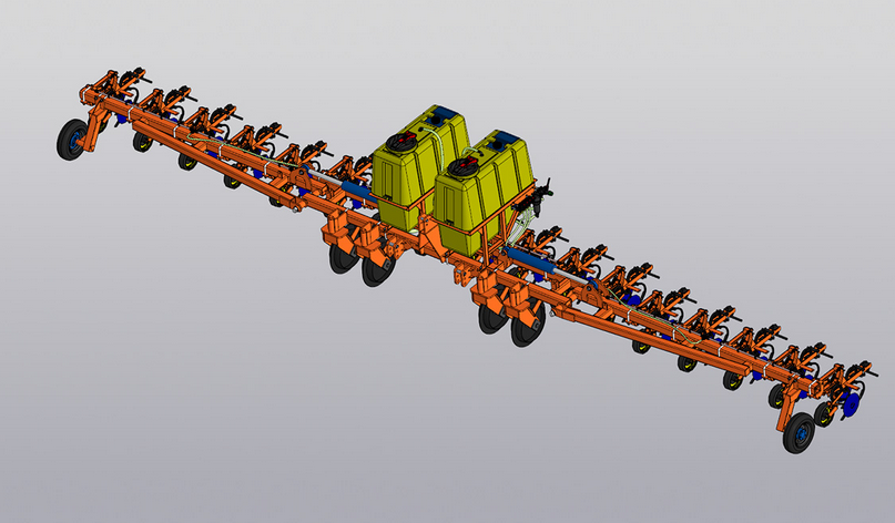 Культиватор переводится в транспортное положение путём складывания боковых крыльев вместе с установленной системой внесения удобрений.