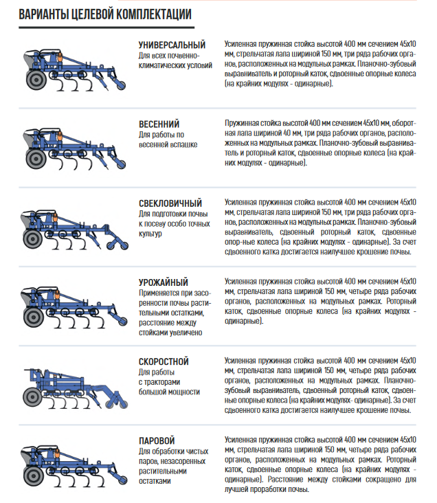 • комплектуются очень прочными и долговечными культиваторными лапами;