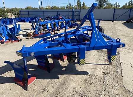 При снятии отвала, можно использовать как плуг - рыхлитель для безотвальной пахоты, а применение удлиненной стойки полностью исключает забивание пожнивными остатками.