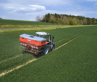 Гидравлический привод дисков (H-EMC) не зависит от скорости двигателя. Он поддерживает постоянную скорость вращения дисков и соответствующую рабочую ширину. Диски приводятся в движение гидравлической системой трактора, когда требуется только низкая скорость подачи (от 45 л/мин. при 180 бар), независимо от скорости двигателя и вала отбора мощности. Зона разбрасывания остается постоянной и может быть плавно адаптирована под конкретные точки земли. Также разбрасывание можно производить при низких скоростях двигателя, что экономит топливо. Мешалка не повреждает удобрения, потому что останавливается сразу после закрытия выпускных устройств. Высокопроизводительные тензометрические датчики веса постоянно информируют водителя о том, сколько удобрения осталось в бункере.