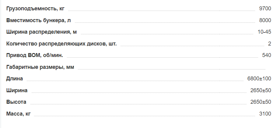 Предназначен для перевозки и поверхностного внесения минеральных удобрений.